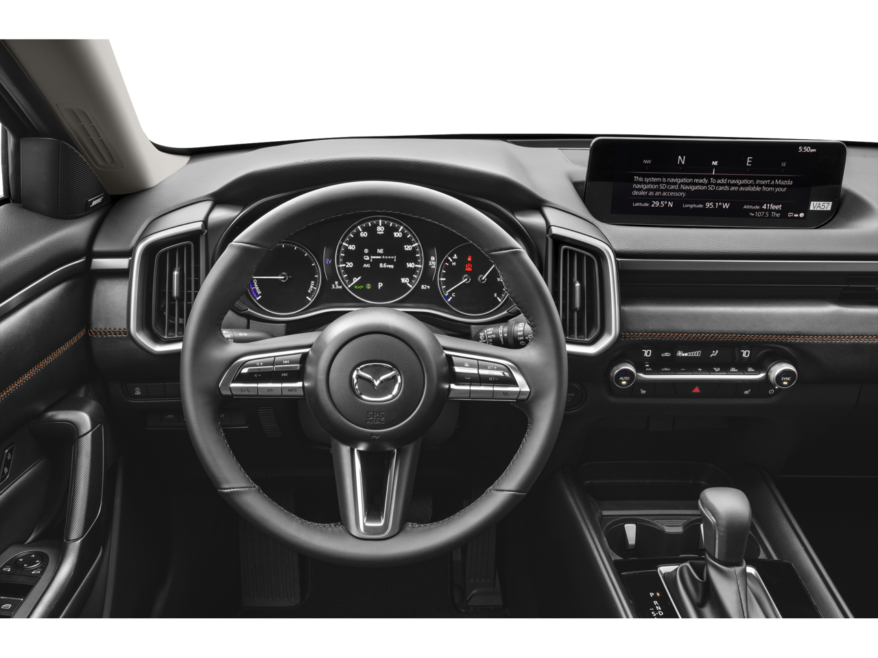 • AM/FM/HD Radio Bose 12-Speaker Audio Sound System -inc: 10.25" full-color center display w/touch screen for Apple CarPlay and Android Auto, Alexa built-in, audio menu voice-command, Bluetooth® hands-free phone and audio capability, MAZDA CONNECTâ„¢ infotainment system w/in-vehicle Wi-Fi, navigation services including vehicle finder/send to car/map online update from PC, infotainment system voice command, multi-function commander control, radio broadcast data system program information, SiriusXM satellite radio w/3-month trial subscription (not available in AK and HI), 4 USB audio inputs and wireless Apple CarPlay and Android Auto integration