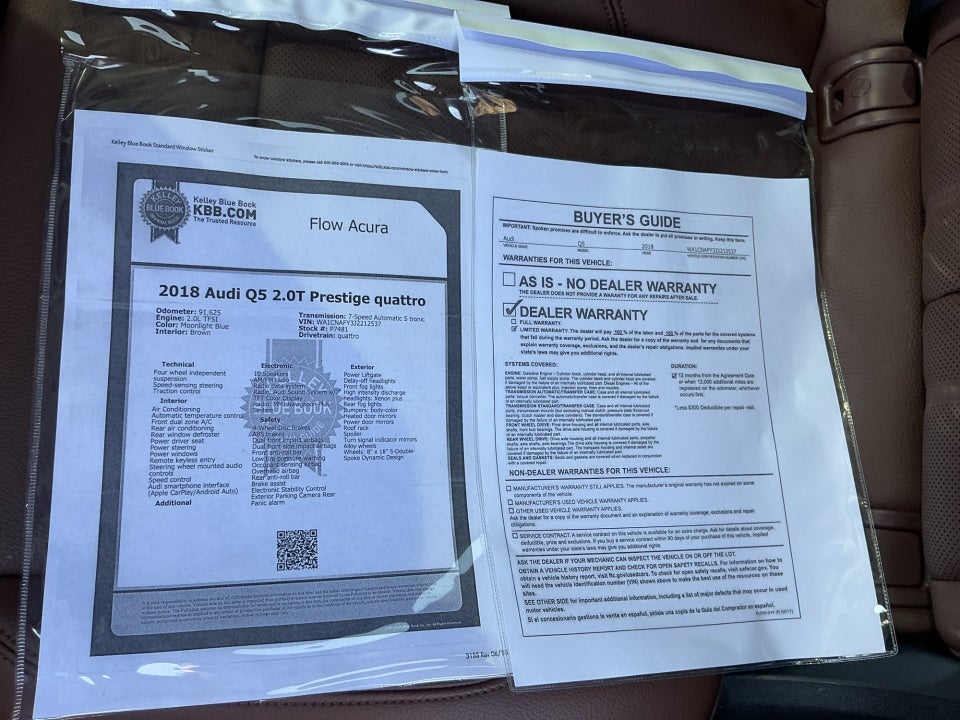 FLOW CERTIFIED! 12 MONTHS/12000 MILE WARRANTY 3 day money back guarantee and a free maintenance package on this 2018 Audi Q5 Blue 2.0T Prestige! **