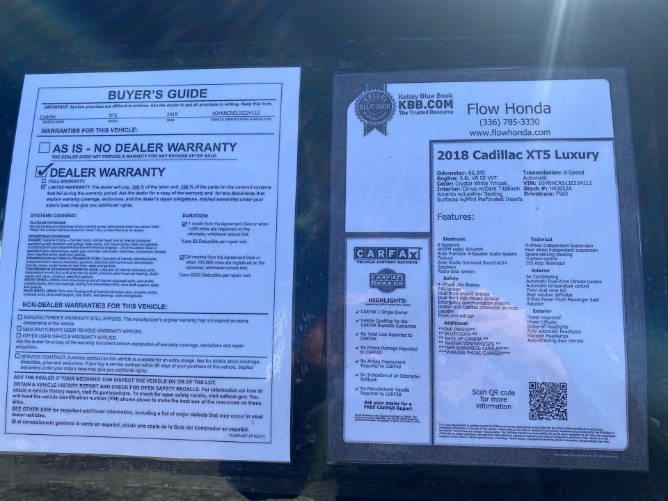 FLOW CERTIFIED! 2YR/100 000 MILE WARRANTY with $300 deductible and a free maintenance package on this 2018 Cadillac XT5Crystal White Tricoat Luxury! **