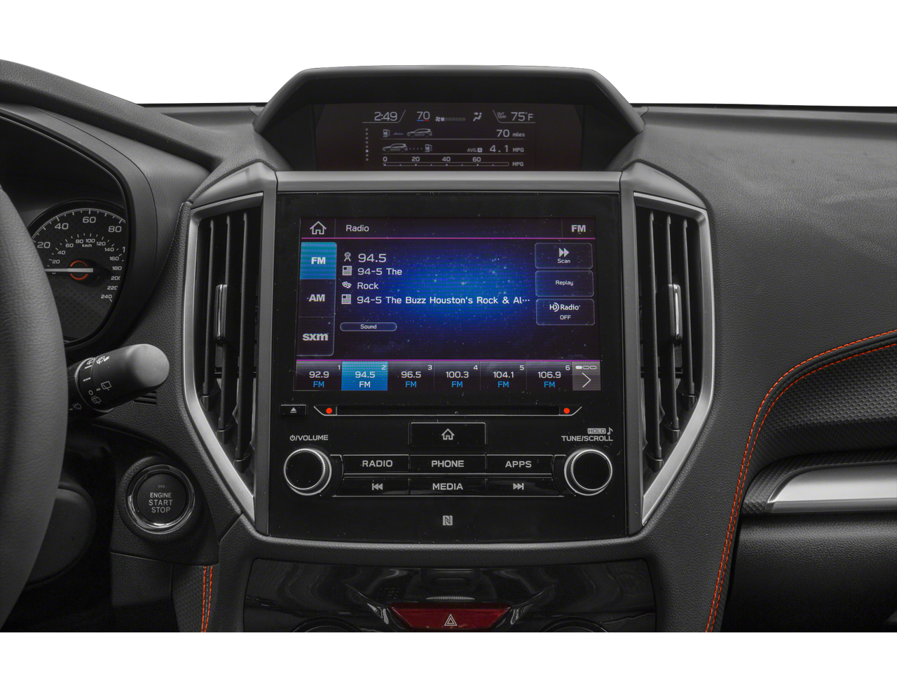 - Radio: Subaru Starlink 6.5" Multimedia Plus System -inc: AM/FM stereo HD Radio w/single-disc CD player w/MP3/WMA/CRR/RW file capability, multi-touch gesture high resolution display, 6.5" LCD screen, Bluetooth® audio streaming connectivity and hands-free phone connectivity, iPod control capability, rear-vision camera display, SiriusXM All Access radio and Travel Link (subscription required), smartphone integration: AHA, Android Auto, CarPlay and Pandora, Starlink cloud applications: refer to subaru.com for app availability, dual USB port, 3.5mm auxiliary input jack, 6 speakers and body color roof mounted antenna