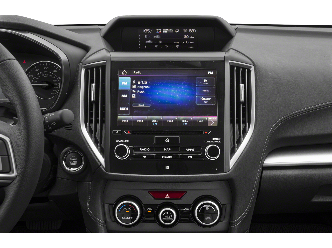 • Radio: Subaru STARLINK 8.0" Multimedia Plus System -inc: AM/FM stereo, HD radio, single disc CD player, MP3/WMA/CRR/RW file capability, multi touch gesture high resolution 8.0 LCD display screen, voice activated controls, Bluetooth® audio streaming connectivity, Bluetooth® hands-free phone connectivity, Bluettoth hands-free sms text messaging connectivity (applicable w/compatible cell phone), Near Field Communication (NFC), iPod control capability, rear-vision camera display, SiriusXM All Access radio (subscription required), SiriusXM Travel Link (subscription required), smartphone integration, AHA, Android Auto, CarPlay, Pandora, 6 speakers, 3.5mm auxiliary input jack, dual USB ports, roof mounted antenna and audio/satellite connected services