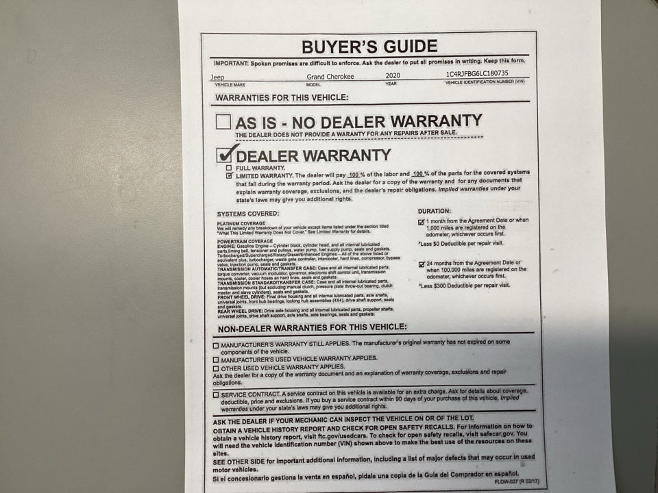 - Vehicle Name: Jeep Grand Cherokee