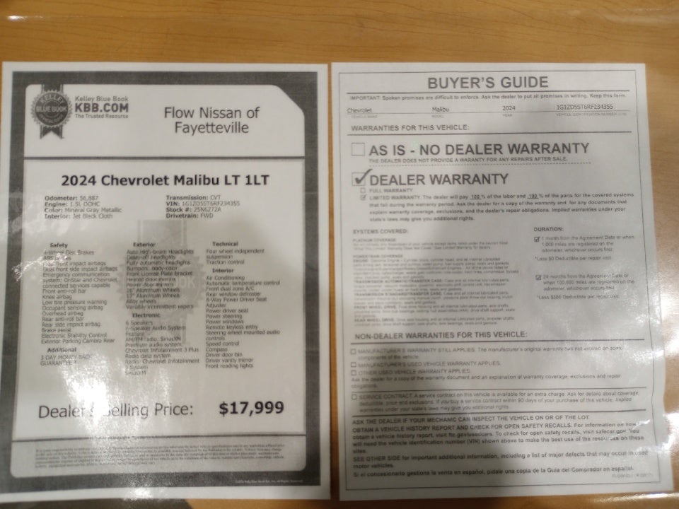 3 DAY MONEY BACK GUARANTEE * 2024 Chevrolet Malibu LT 1LT Mineral Gray Metallic LT FWD 1.5L DOHC