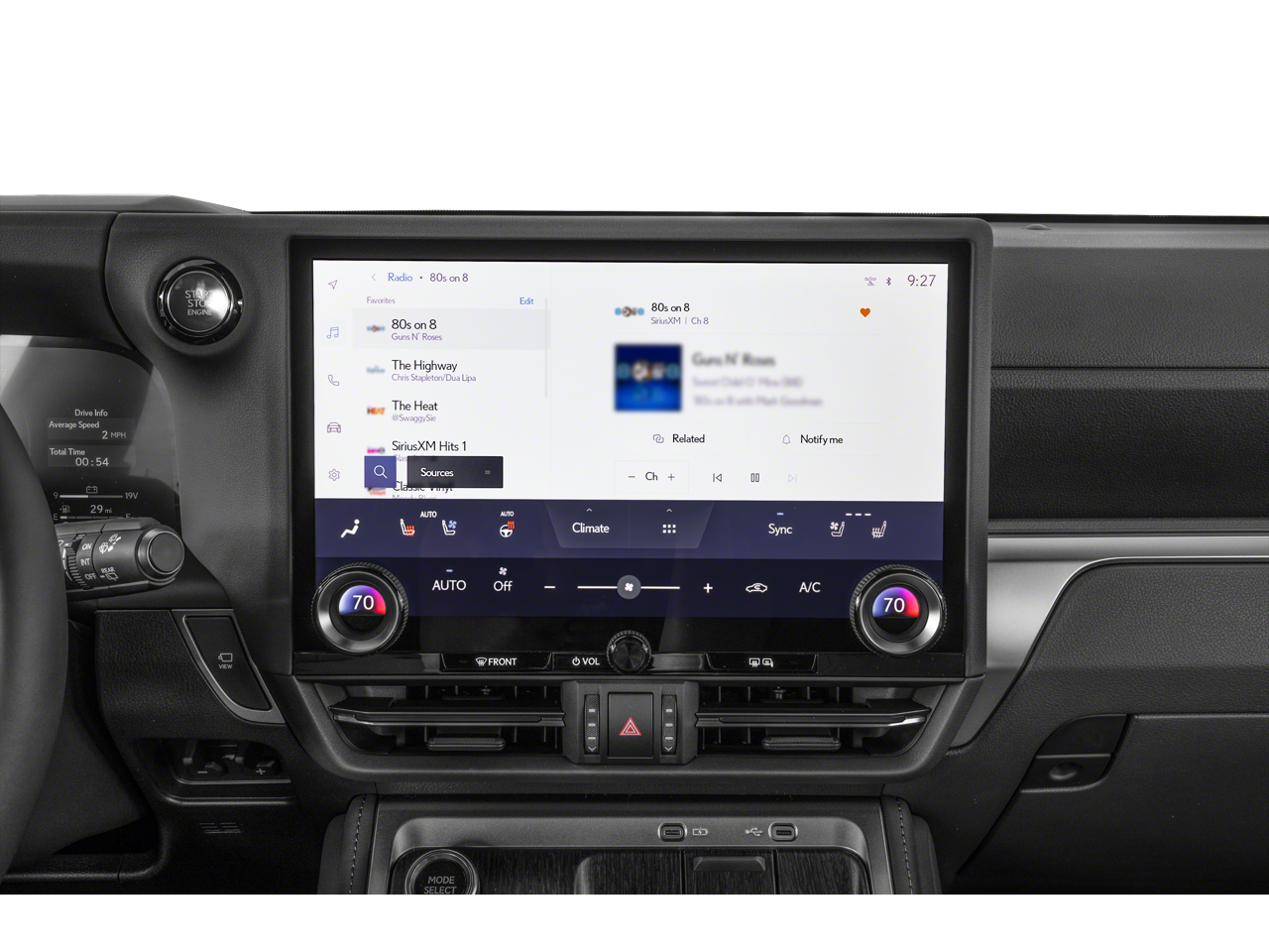 - Radio: Lexus Interface w/14" Touchscreen -inc: 10 speakers, wireless Apple CarPlay integration, Android Auto compatibility, Safety Connect (up to 10 year trial), Service Connect (up to 10 year trial), Remote Connect (3 year trial), Wi-Fi Connect (up to 30 day/3 GB trial) and Drive Connect w/Cloud Navigation, Intelligent Assistant and Destination Assist (3 year trial)