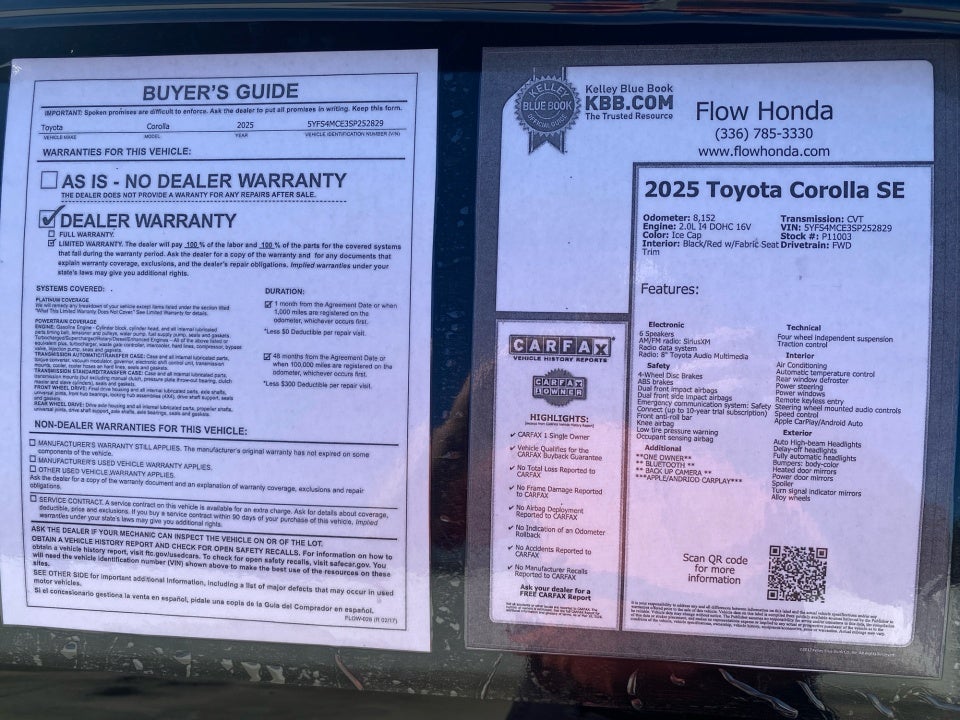 FLOW CERTIFIED! 4YR/100 000 MILE WARRANTY with $300 deductible and a free maintenance package on this 2025 Toyota Corolla Ice Cap SE! **